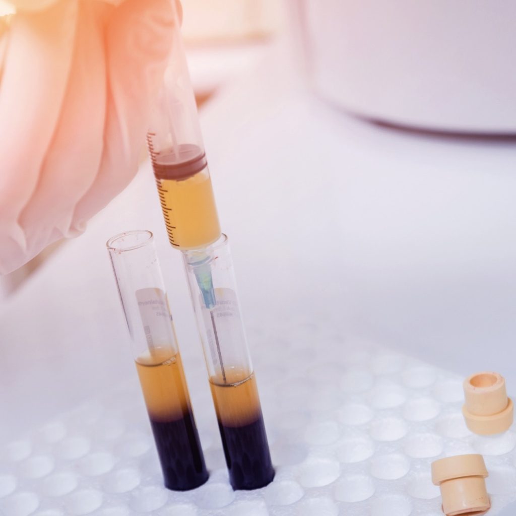 En lille mængde blod tages fra din arm – præcis som ved en almindelig blodprøve.Centrifugering